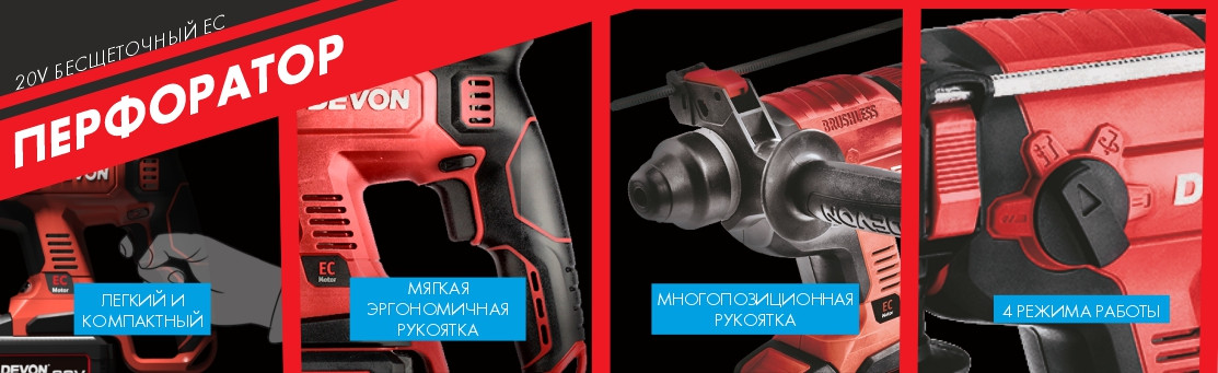 Быстрый просмотр Аккумуляторный перфоратор DEVON 5401-Li-20RH/ brushless /... 5401-Li-20RH 13 167,92 ₽